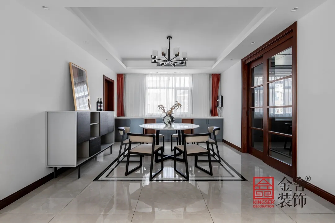 當(dāng)前位置: 首頁(yè) > 裝修案例 > 裝修圖庫(kù) > 康馨園新中式裝修餐廳實(shí)景圖